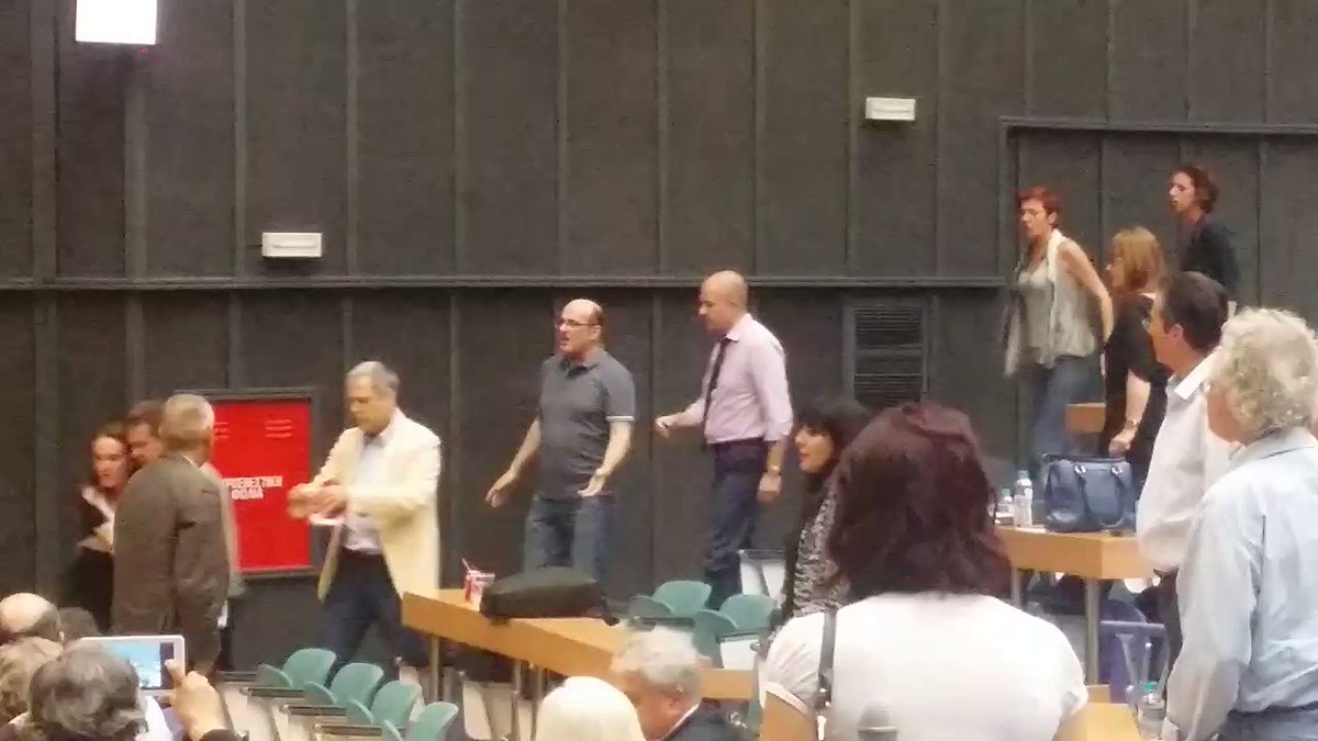 Σύμφωνα με τον Γιώργο Καραμέρο, ο Θάνος Τζήμερος γρονθοκόπησε την Αλεξάνδρα Μπαλού, αφού προηγουμένως έσκισε αφίσες. Αμέσως μετά την βιαιοπραγία το Περιφερειακό Συμβούλιο, αποφάσισε την αποβολή του δράστη.