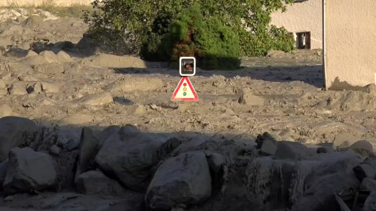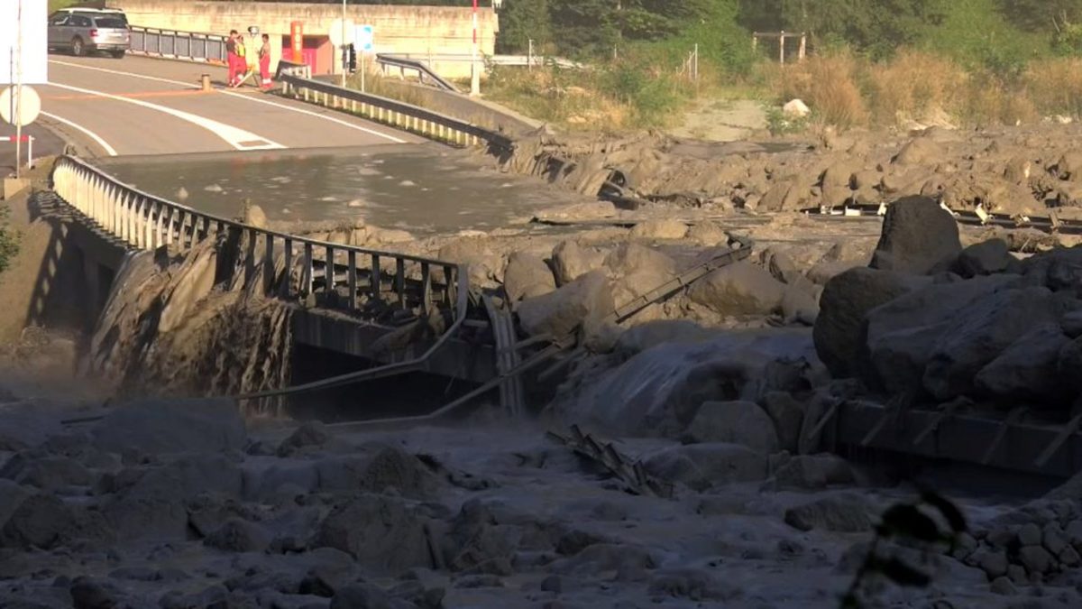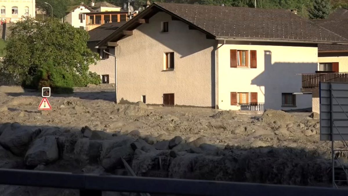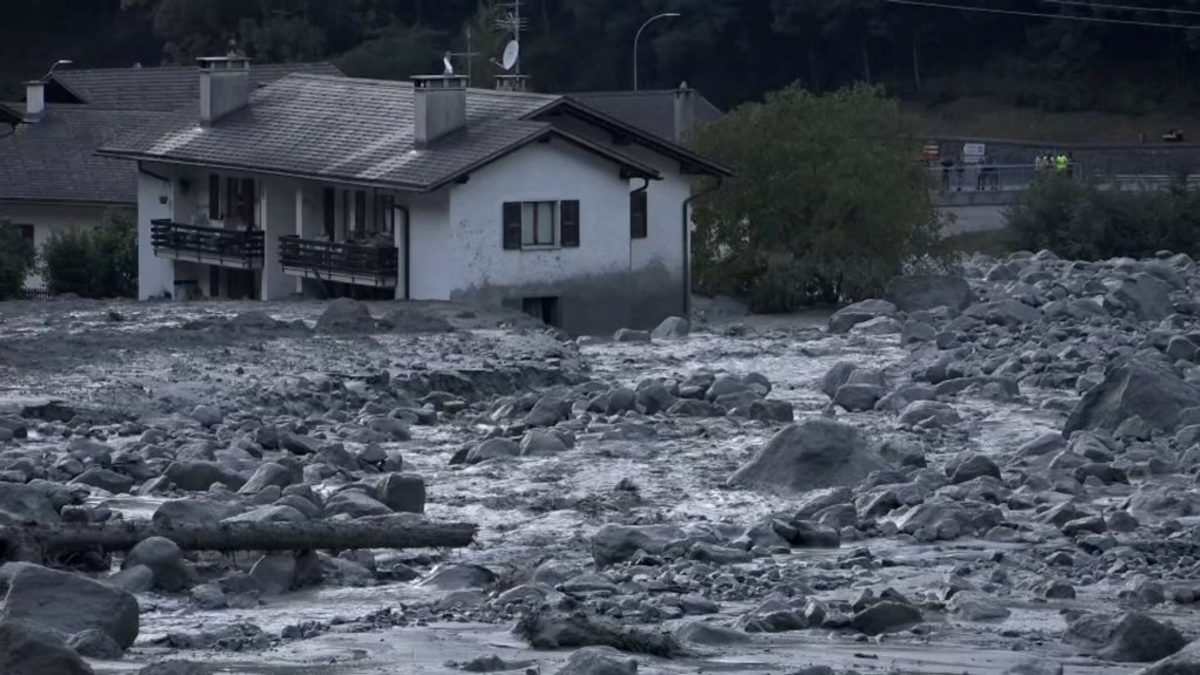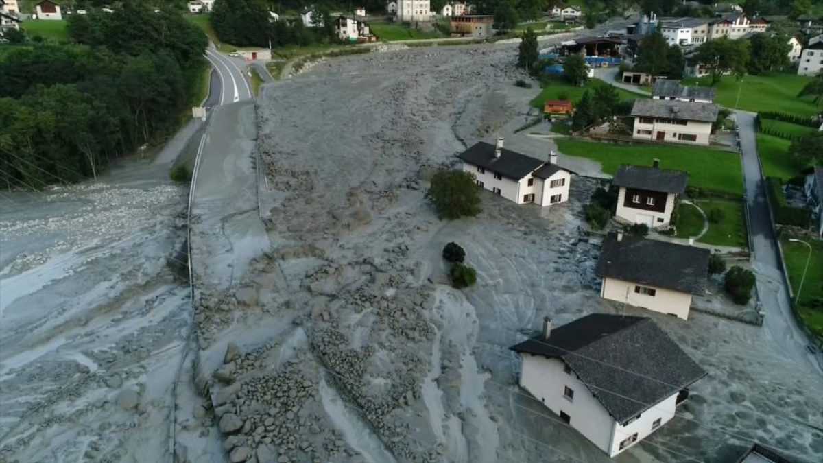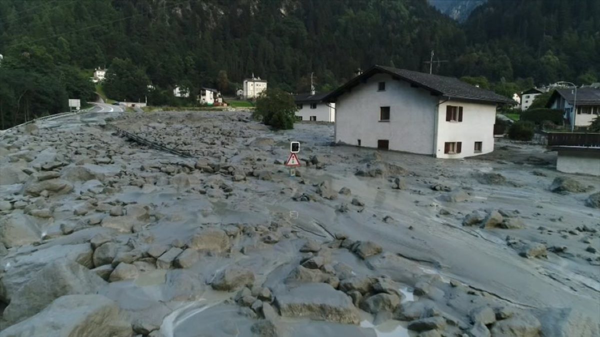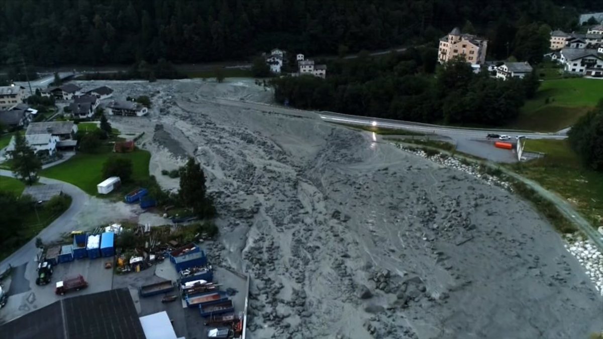 Βράχια έπεσαν στην κοιλάδα πίσω από το μικρό χωριό Μπόντο στο καντόνι Γκρισόν. Η κατολίσθηση στη συνέχεια έφτασε έως το χωριό.