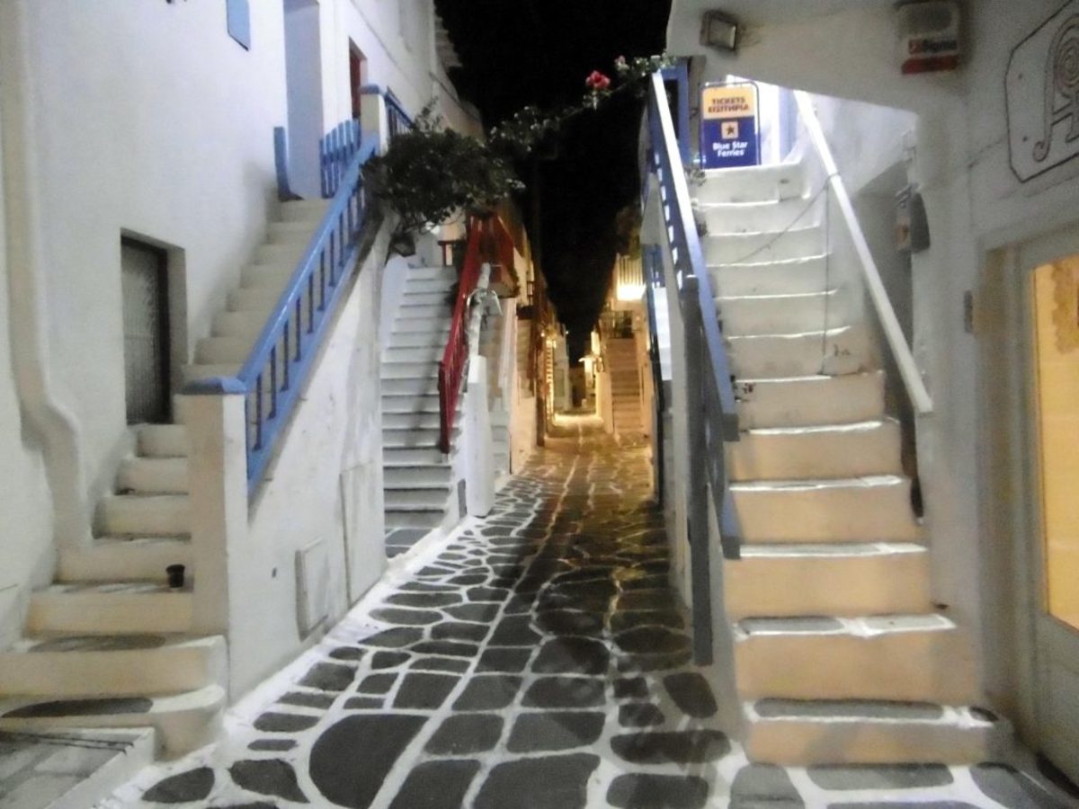 Ένας πλούσιος συγγενής με καλεί να τον συνοδεύσω στο νησί για διακοπές. Το σπίτι που έχει μισθώσει κοστίζει 600 ευρώ τη βραδιά. Είναι μια συμφωνία. Ένα αξιοπρεπές (όχι θαυμάσιο) ξενοδοχείο εδώ, θα κοστίσει τουλάχιστον 1.000 ευρώ ανά διανυκτέρευση. Το σπίτι έχει θέα στο κέντρο της κύριας πόλης, γνωστή ως Χώρα. Πρόκειται για ένα τυρβώδη λαβύρινθο από λευκά κτίρια και μικρούς δρόμους με μικροσκοπικά καταστήματα που πωλούν ένα μίγμα από τουριστικά πλεχτά και ρούχα σχεδιαστών.
