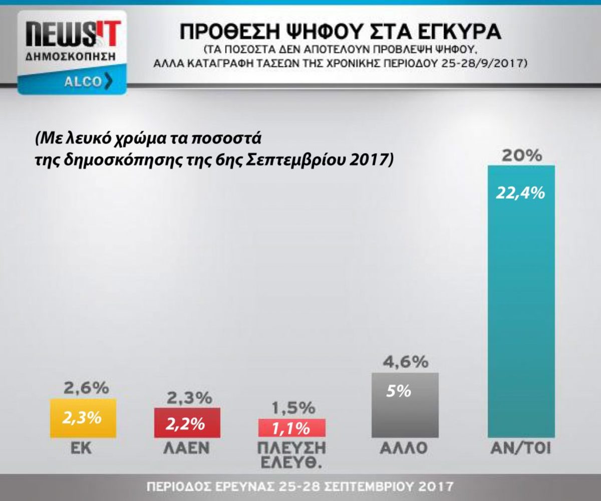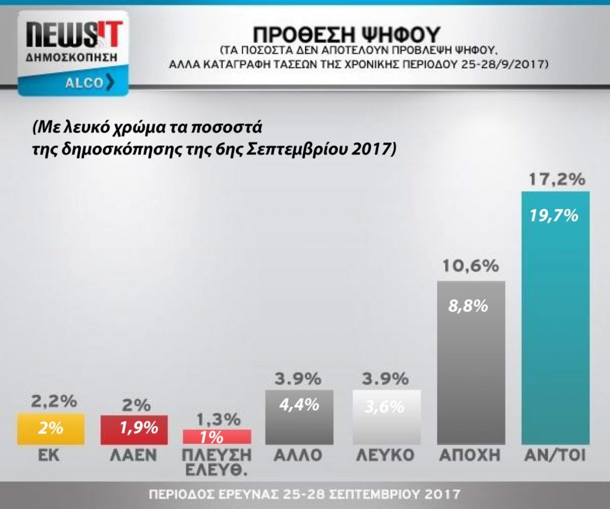 Ειδικά αν γίνει σύγκριση με την αντίστοιχη στις αρχές Σεπτεμβρίου που είχε κάνει και πάλι η Alco για λογαριασμό του newsit.gr.