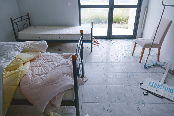 Σύγχρονα όργανα γυµναστικής, πανάκριβος εξοπλισµός και κλιµατιστικά έχουν αφαιρεθεί, οι χώροι έχουν γεµίσει σκουπίδια, πόρτες και παράθυρα είναι σπασµένα, ενώ κεριά, αποµεινάρια τελετών και προφυλακτικά µέσα σε στοίβες από στρώµατα εντοπίζονται σε διάφορα δωµάτια