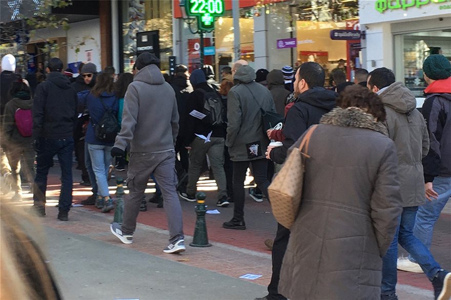 Συμβολική ειρηνική πορεία το μεσημέρι του Σαββάτου στην κεντρική αγορά από ομάδα 60-70 ατόμων, με συνθήματα κατά του Μιχάλη Χρυσοχοΐδη
