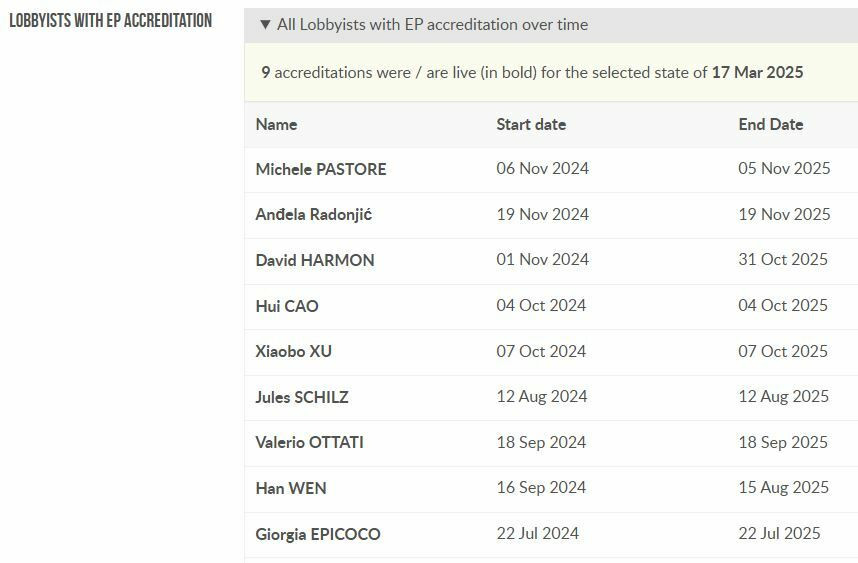 Η Huawei δήλωσε τον περασμένο Οκτώβριο ότι είχε 11 λομπίστες πλήρους απασχόλησης στην ΕΕ, εννέα από τους οποίους ήταν διαπιστευμένοι για να έχουν πρόσβαση στο Ευρωπαϊκό Κοινοβούλιο.
